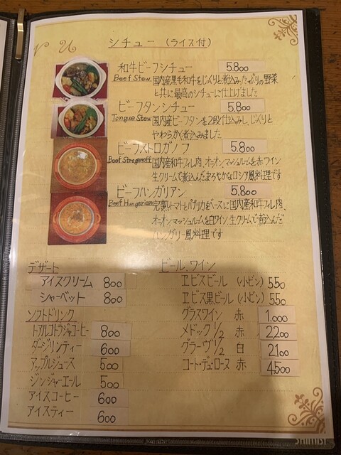 シチューは和牛ビーフシチューだけ。欧風カレーとシチューの専門店、ちゃんとシチューの説明も。