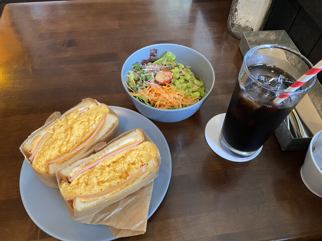 フワッフワでトロトロの卵にハムとチーズが贅沢に挟まれたサンドイッチ。