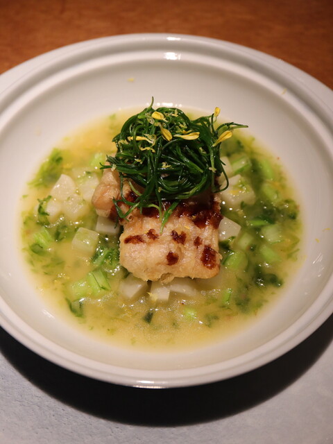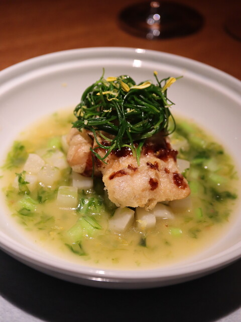 昆布や魚醤の旨味を巧みに取り入れながら、旬の食材を最も優れた調理法で施すことを矜持とされています。