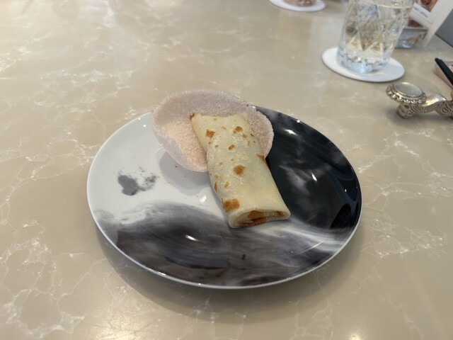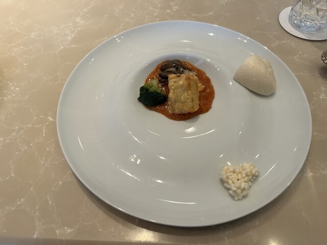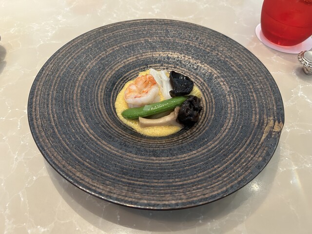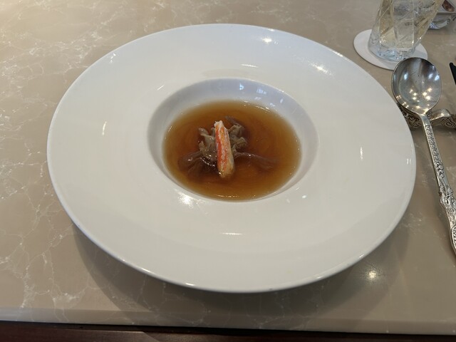 前菜盛り合わせから蟹肉入りフカヒレスープ・北京ダック・白身魚のチリソース・海の幸の炒め物と続き、しめはご飯か汁そばだけどハーフで両方でもいいとの事でそうしてもらいました。