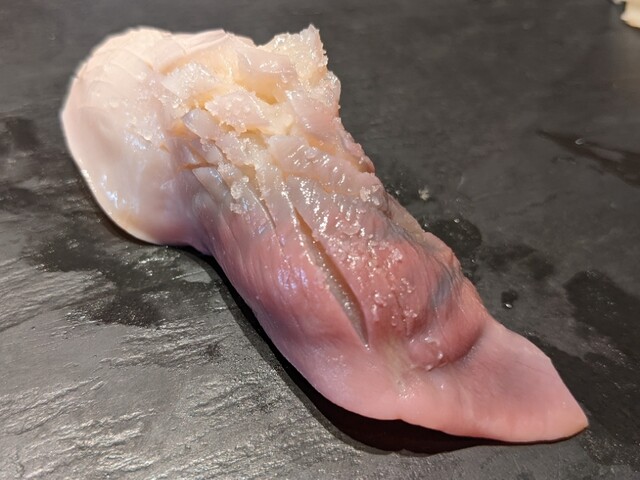 松皮鰈エンガワ …コレがエンガワなら今まで食べてたのはエンガワではない…と言うか普通のヒラメのエンガワと比しても独特の弾力と味わいな気がするw
