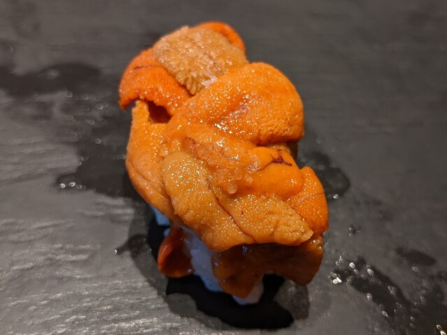 バフンウニ(浜中) 厚岸近くの浜中産 そろそろシーズン終わりらしいけど濃厚な味わい…さすがの極上さだけど(それでも)今日はムラサキの勝ちかなぁ…