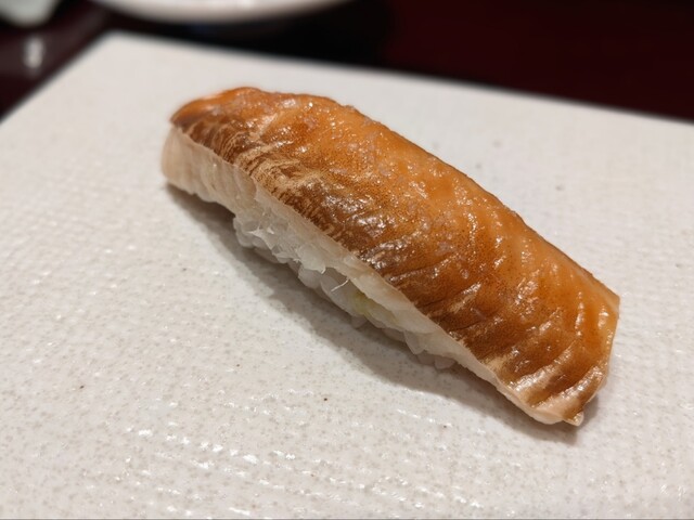 ここからは追加注文 生ニシンがあると聞いては行かずにはいられない← 以前に1回食べたコトはあるけどあまりはっきりした記憶ないので確かめたいってのもあるし何よりレア!!口に入れると旨味とか脂は少なく、とても淡白な味わいで身はコリコリしている 寿司ネタとしてはパンチ弱くて、だから記憶にないのかな~って思ってたら食べ終わった後にニシン特有の香りがフワッと来た…しかも通常食べる干物のそれではなく生の鮮烈な香りである コレが凄く良かった!!今日イチの衝撃である