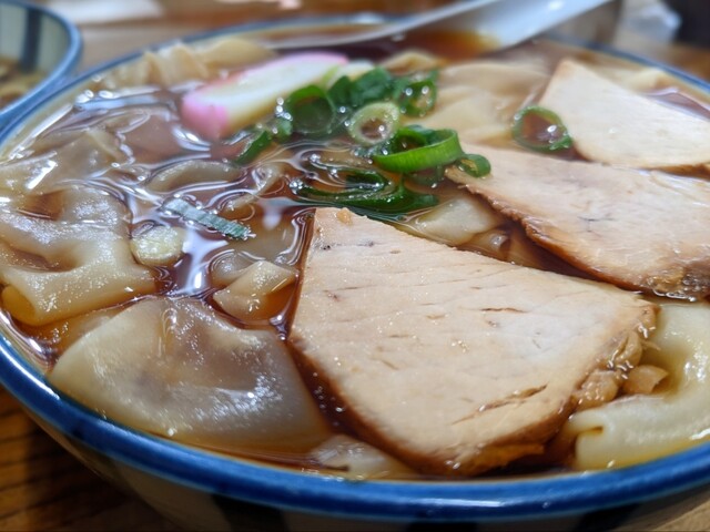 ストレートでコシのある細麺も縁までいっぱいの真っ黒な醤油スープも(ワンタンは中華そばに比べて薄めでそれも同じくらい良い)脂身のない切れ端みたいなチャーシューもほぼ皮だけのワンタンも、コレが俺(のラーメン観)を作り上げたものであり故郷である