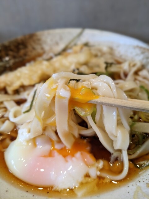 熱いかけ汁とこれも揚げたてアツアツのかき揚げと合わさると最強レベルに旨い