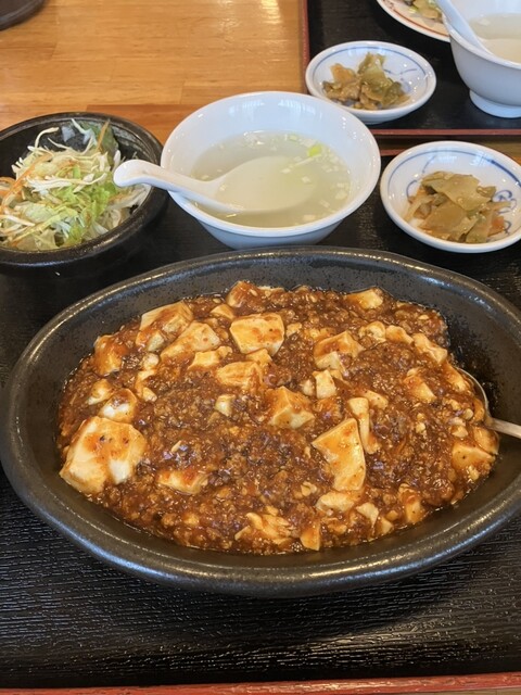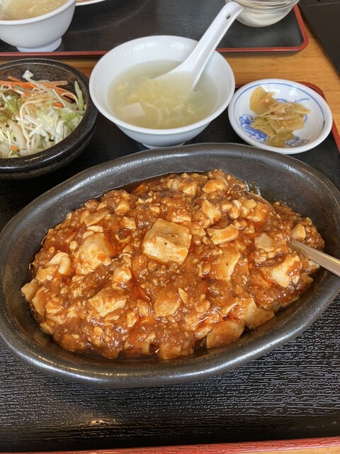 麻婆豆腐は、ひき肉多めで、ラー油、山椒の辛さが結構あります。辛さはお願いすればもっと辛くも出来ます。自分はノーマルで。