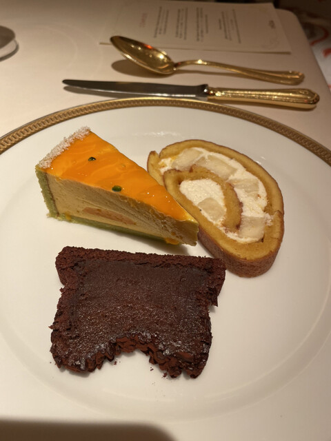 マンゴームースとガトーショコラとピーチパインとココナッツのロールケーキ
