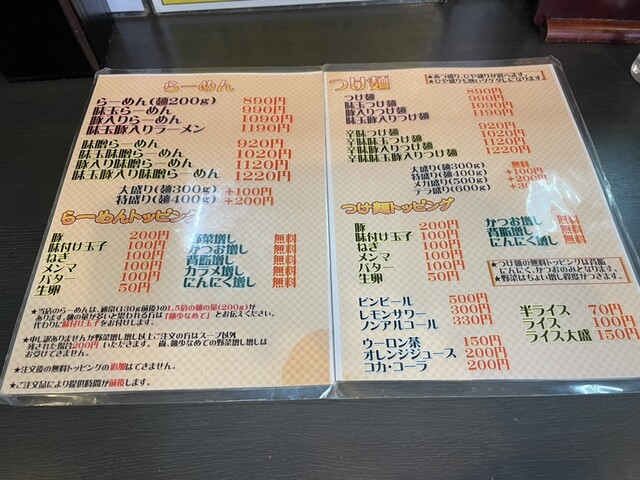 ラーメン(200g) 890円