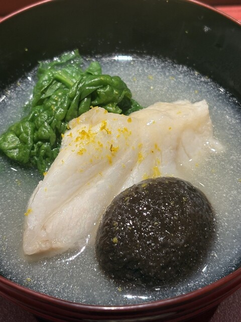 ・クエ、椎茸、かつお菜、蕪のみぞれ