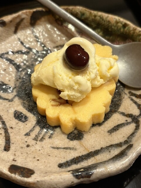 デザートはだし巻き卵にバニラアイスという意外な組み合わせで、