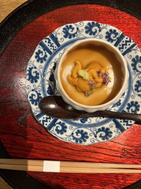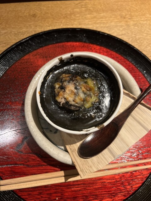 ▪️白子 新玉ねぎ イカ墨蛤出汁