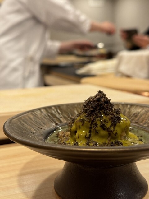 ・鮑の肝ソース、トリュフ掛け