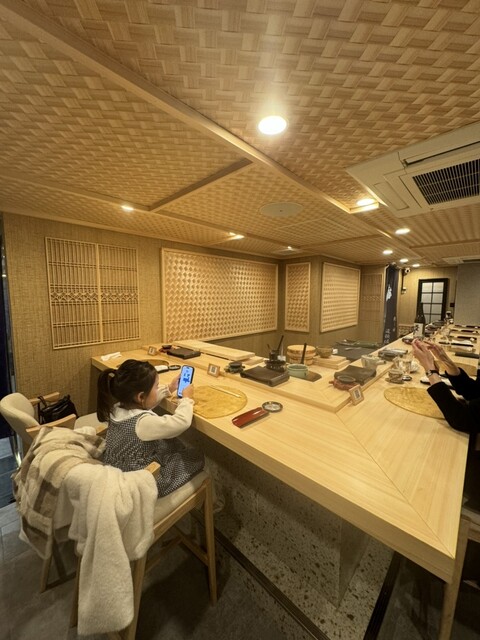 空間もヒノキでできた、広々カウンター