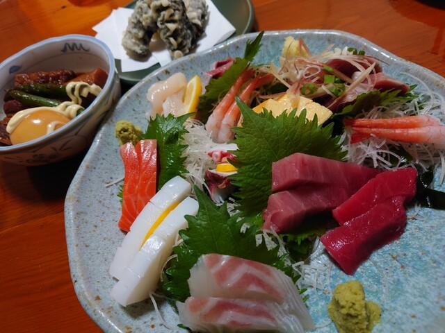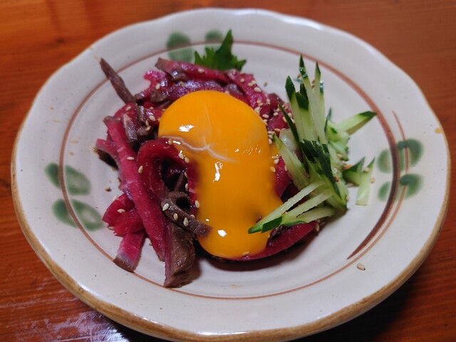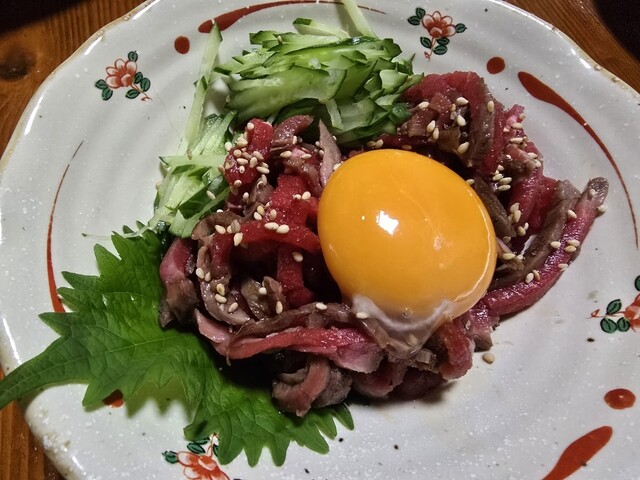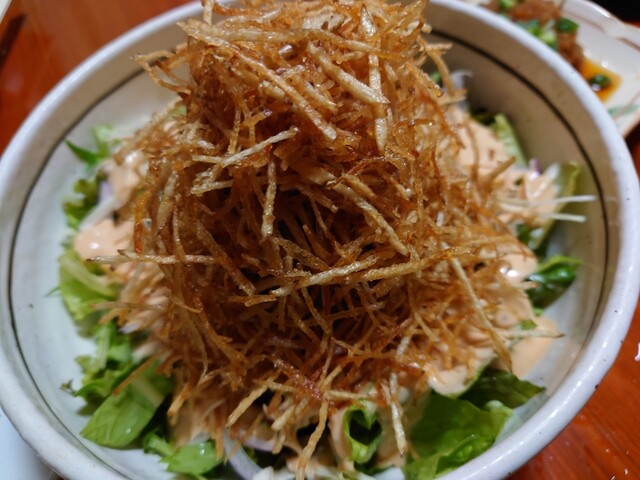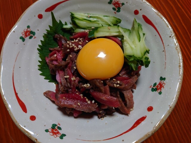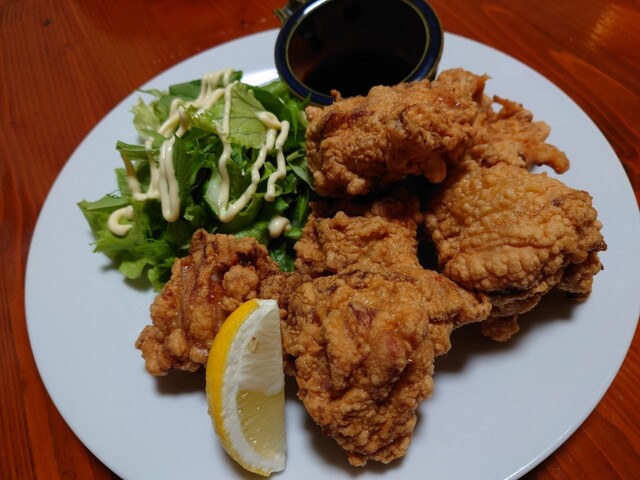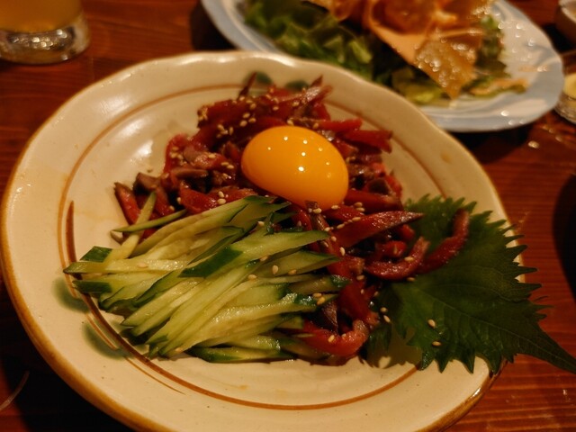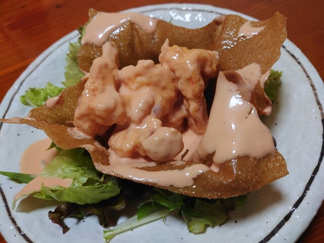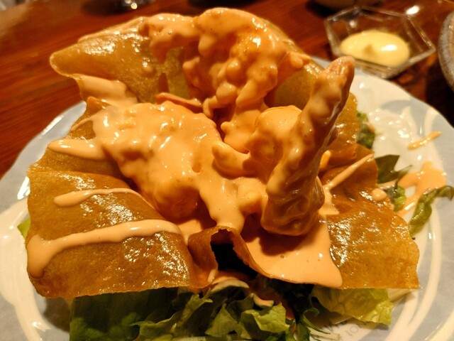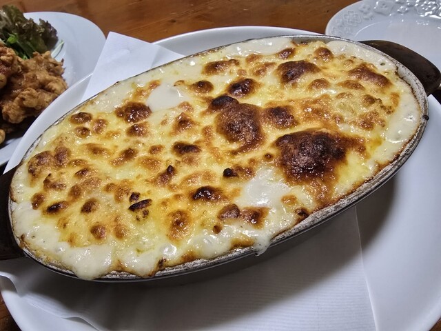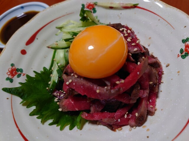 オススメは、牛たたきユッケ、唐揚げ、エビグラタン