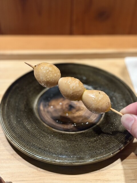最初の串は「抱き身」でしたが、比内地鶏の美味しさ、火入れの技術双方が詰まった串でした。