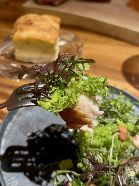 ほうき鶏薪焼き 柚子胡椒ハーブサラダ