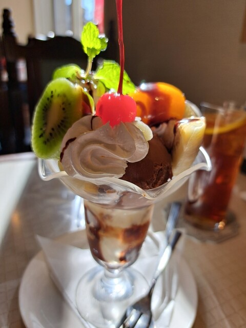 昼からパフェ食べてる変な奴、オヤジの私1人だけみたい・・・(((・・;) ちょっとした背徳感に美味しさが増す。