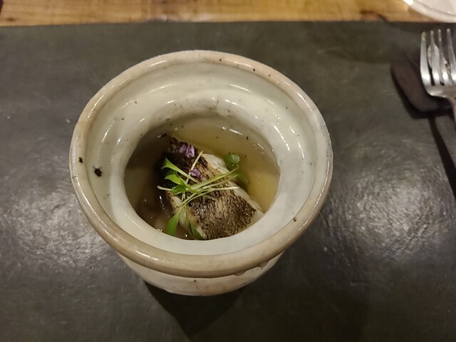お魚はヒゲソリダイという聞くのも初めてのお魚。炭火焼きにしたものと、さらには初めて食べるサイズの大なめこのスープ仕立て。