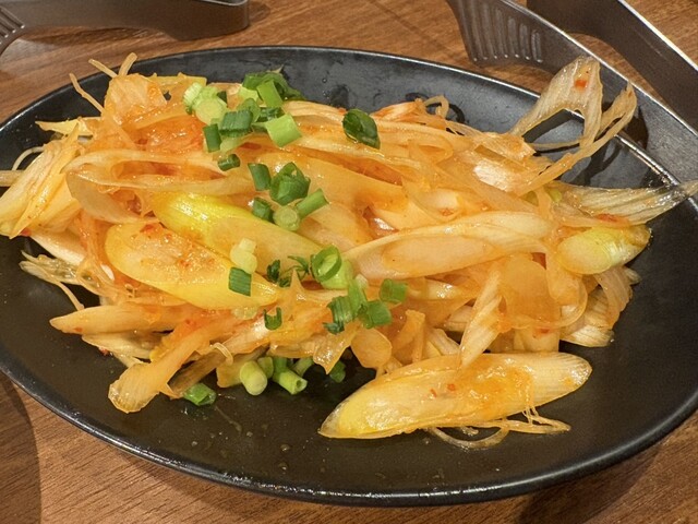 ピリ辛ネギ、レバーパテ、カブのキムチを、つまみながらの牛タンづくし