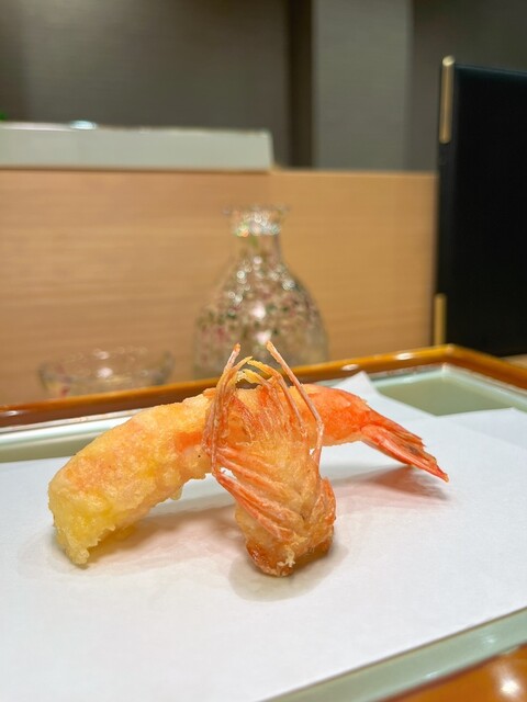 海老の天ぷらの上には、たっぷりの雲丹が乗っていました‼️