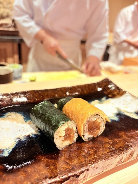巻き物、いなり手毬、玉子焼きまで完成度が高く、最後の赤だしと季節の果物でほっと締まる、満足度の高いコースでした。