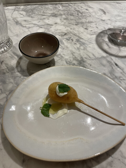 フランスの天ぷらを串揚げにした、コーススタイルのオシャレなお店。旬の食材や新鮮な魚介、フレンチならではの食材が食べれます♡シェフやスタッフの方と会話しながら楽しい時間過ごしました。臨場感を味わえるカウンター席で、目の前で一品一品揚げていただきました。フレンチ串揚げは今までに味わったことのない食感やお味を楽しめました。