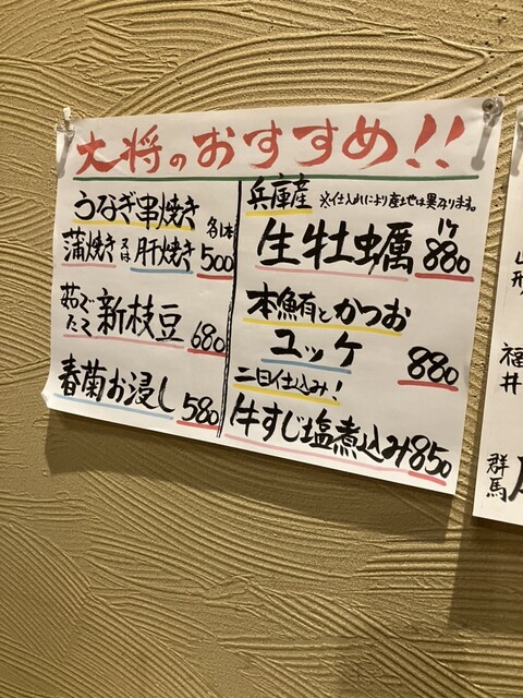 お店の方に本日のおすすめ料理を紹介してもらい、どれも美味しかったが特に「牡蠣」と「雲丹」の寿司が絶品。