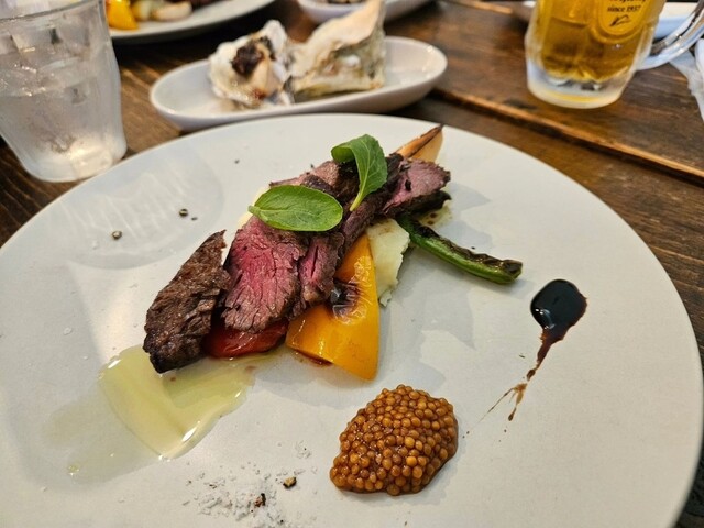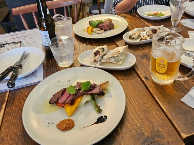 #フレスカ #オイスターバー #ノンアルビール #3200LUNCHCOURCE #生牡蠣2種食べ比べ #フレスカのお魚サラダ自家製オリーブソース #焼き牡蠣2種食べ比べ #ブラックアンガス牛ハラミステーキ #ファーストドリンク #アイスコーヒー #グラスワイン白