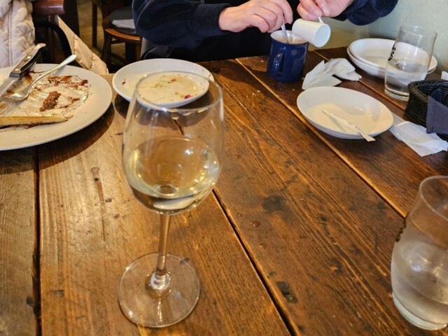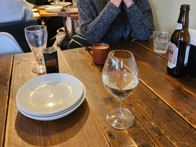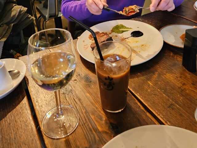 (相方はアイスコーヒー、自分は白ワイン) 。