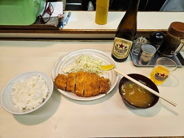 レトロで小さな定食屋さんで、ボリューム満点。美味しいとんかつをたっぷり堪能。ご馳走様でした!