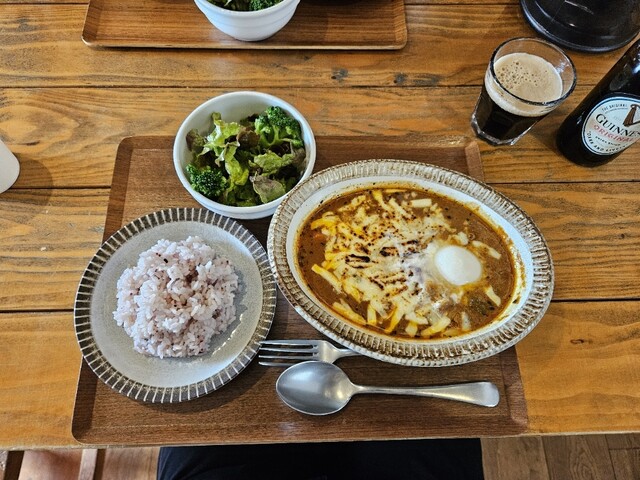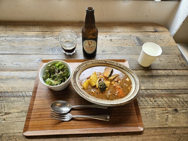 ◾『野菜のせオムレツスープカレー』と『ギネスビール』。