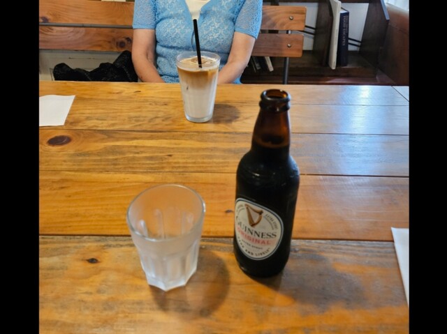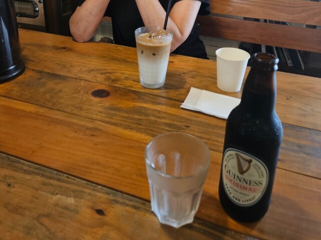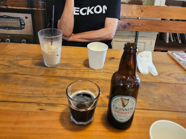 ◾自分が『野菜スープに温玉納豆のせ』『ギネスビール』。