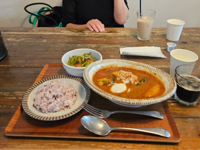 ◼相方が『チーズと野菜のスープカレー』『サラダ』『アイスカフェラテ』、および、