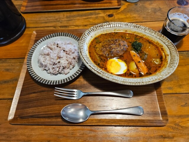#SHOAN2 #ショウアン2 #ハンバーグと野菜のスープカレー #サラダ #アイスカフェオレ #スタッフおすすめ #温玉チーズスープカレー #ギネスビール