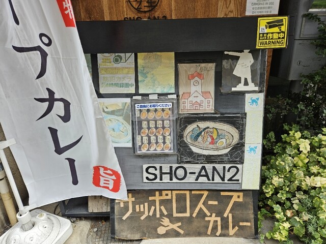台風一過、晴天・真夏日の土曜日 (23~33℃) 。今日も「近所の食べ友」のリクエストでまたまたスープカレー専門店へ。最近、登場回数がかなり多いが、暑い夏はやっぱり無性にカレーが食べたくなる。自宅から徒歩1分のカフェ、「SHO-AN2(ショウアン2)」へ。