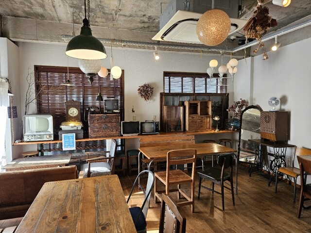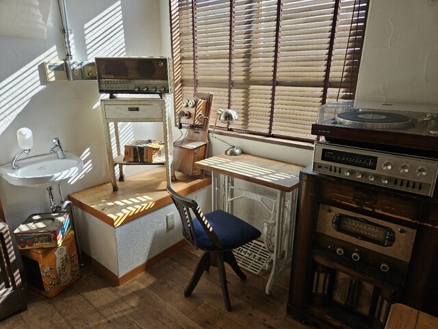 1~2階とも粋なマスターの趣味に溢れた素敵な雰囲気のインテリア。特に昭和アンティーク家電製品の数々が魅力。