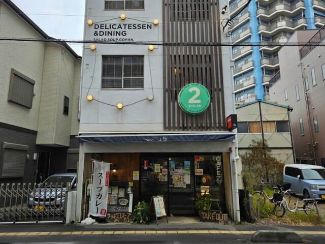 2日連続の猛暑日となった火曜日 (24~35℃) 。今日は「近所の食べ友」の強いリクエストでまたスープカレー専門店へ。暑いとカレーが食べたくなるからね。自宅から徒歩1分のカフェ、「SHO-AN2(ショウアン2)」。