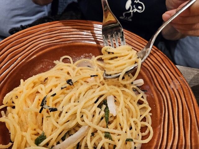 パスタはモチモチねっとりの独特な食感で美味しかったです。ご馳走さまでした!