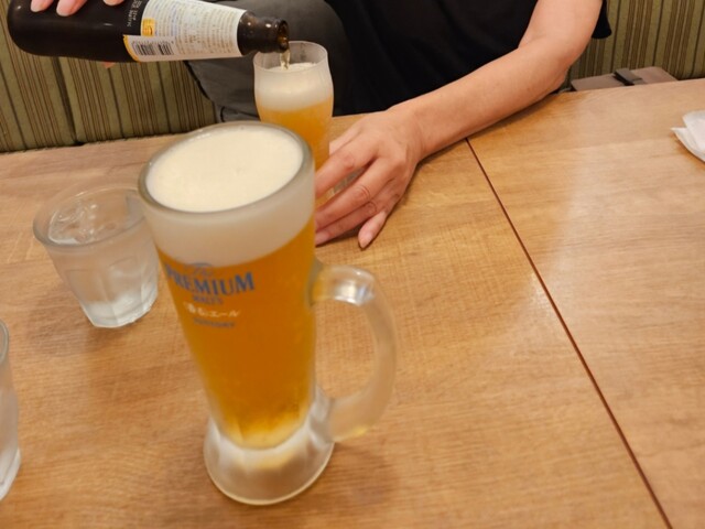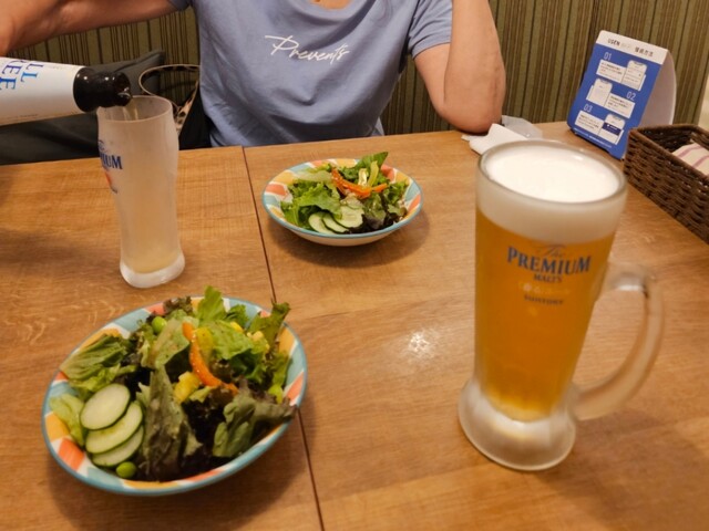 ◼自分が『よくばりアラビアータ』『ランチサラダ』『中ジョッキ (薫るエール) 』『グラスワイン白』。
