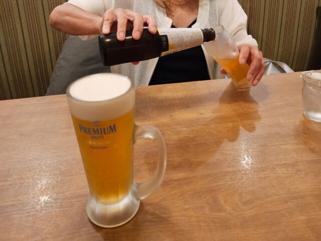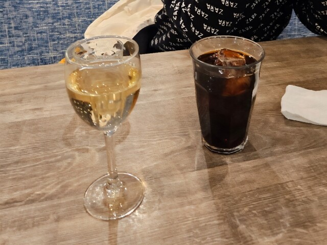 ◼自分が『海の幸ペペロンチーノ』『ランチサラダ』『中ジョッキ (薫るエール) 』『グラスワイン白』。