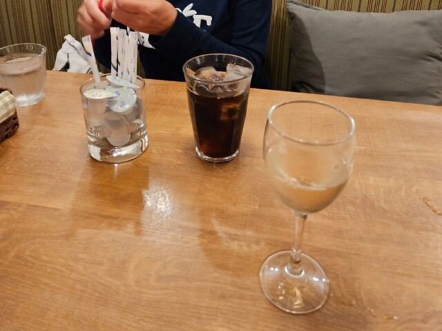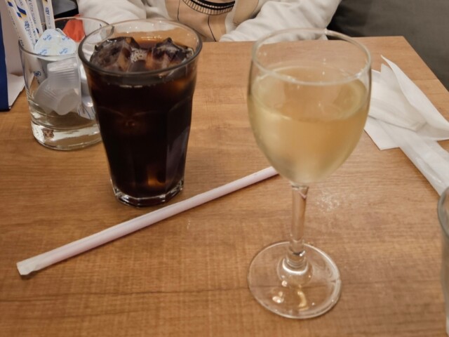 ◼自分が『海の幸のヴェスビオ火山風』『ランチサラダ』『中ジョッキ (薫るエール) 』『グラスワイン赤』『アイスコーヒー』、および、