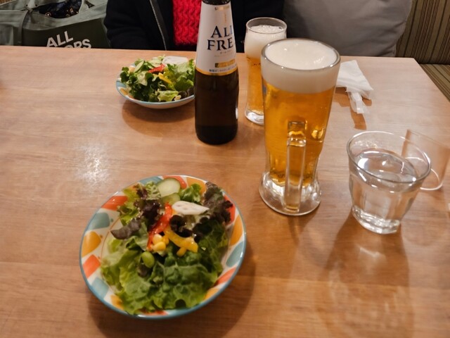 ◼相方が『ナスとベーコンのナポリターナ』『ランチサラダ』『オールフリー』『アイスコーヒー』、