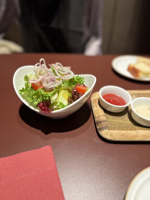 今回いただいた黒毛和牛150gは、レアめの焼き加減が絶妙で、とにかく柔らかい。噛むたびにじゅわっと旨みが広がって、オニオンソースがそれをしっかり引き立ててくれる感じ。