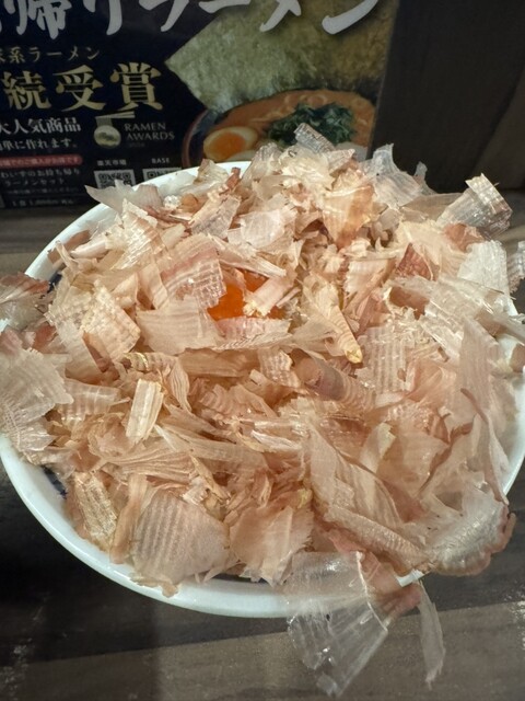 今回、期間限定の「カツオ節ご飯」が登場していたため、いつもの「のり玉ラーメン」と共に注文しました。