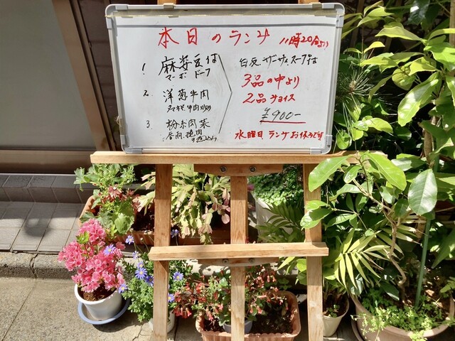 時間は11時半。店は目立たない場所にある。時間が早いのかまだ誰も入っておらず、やや不安ながら入店すると、ウェイトレスさんが気持ち良く案内してくれる。お昼のメニューは900円の日替りのみのようで、用意された3つのうちから2つを選ぶ形式のよう。麻婆豆腐は外せないなと思い、残り1つをどれにしようか悩んだが、何となく洋葱牛肉をオーダー。料理が出るまで、店内を見渡しながら出されたお茶をいただく。おそらくジャスミン茶だと思うが、香りが豊かで素晴らしい。店内は2人掛けテーブルが5席、カウンターに2席と、決して広いとは言えないが、とても落ち着いた雰囲気。中華料理屋的な慌ただしさは全く感じない。そのうち、独りで来店するお客さんがどんどん入りはじめ、相席はないがほぼ満席。10分近く待って料理が運ばれる。見た目はさほど他店と変わらないが、料理も何となく落ち着いて見える。何から食べたか忘れたが、何しろどれを取っても美味しい。まずは口に運んだときの香り。全ての料理に素材一つひとつの香りを感じる。こんな上品な中華はこれまでいただいたことがない。量は決して多くないが、ゆっくり味わって食べたせいか満腹になった。日本料理屋のような落ち着いた中でいただく、とても上品な中華。自分の中では間違いなく一番美味しい中華。リピ確定です。