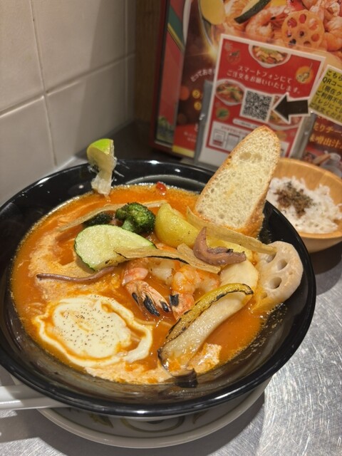 →濃厚なエビトマトソースに生クリームを合わせた、まろやかでコク深い特製エビクリスープ✨