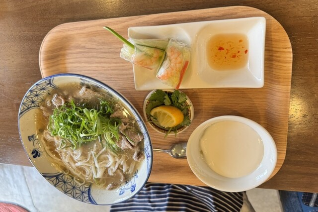 牛シャブフォーはあっさりした美味しい出汁で付け合わせのレモンを絞ってパクチーをのせれば一気にベトナムですねえ(行ったことないけど)(๑˃̵ᴗ˂̵)