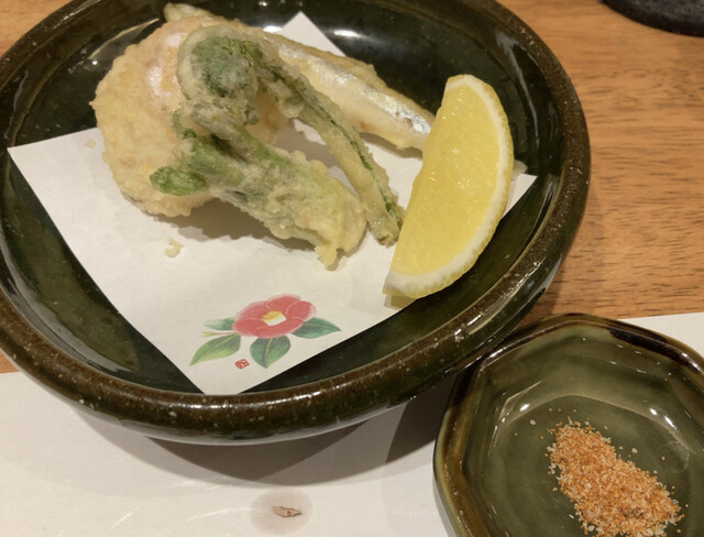 田中六五の貴を半合ずつもらいました。キンキの塩焼き(上品な脂がたまりません)→白子の茶碗蒸し(下半分がほぼ白子笑)によく合う。