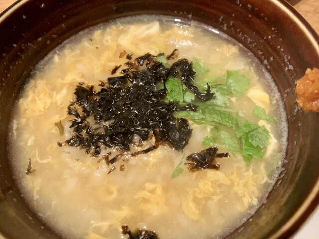 メインの野菜たっぷりの鍋からしめの雑炊。スープが染み込んだ野菜の美味しいこと。スープ飲んで、野菜食べて、すっぽんをしゃぶって…幸せです。自家製柚子胡椒が良いアクセント。