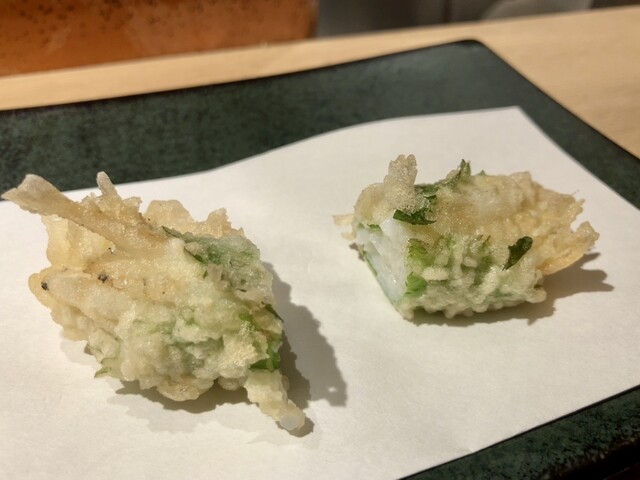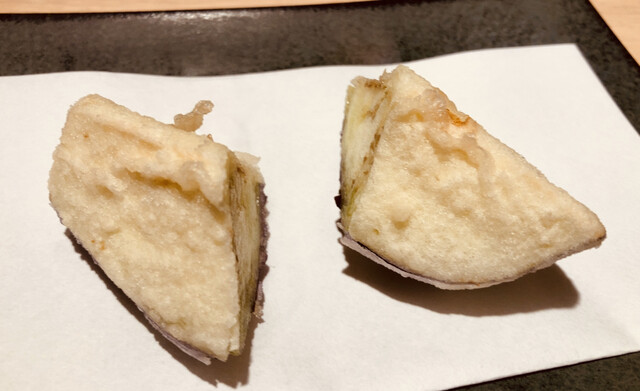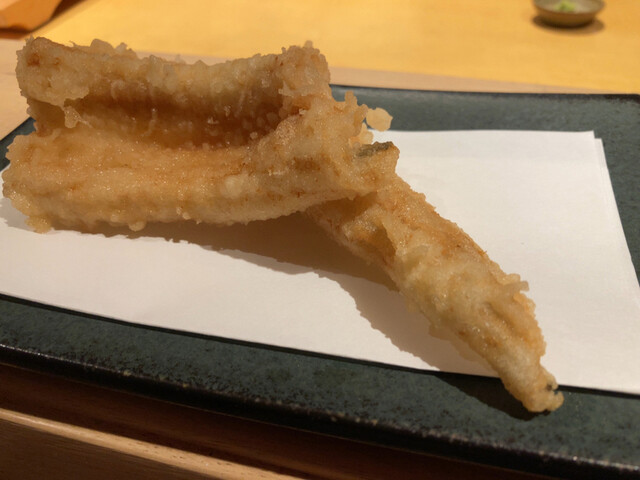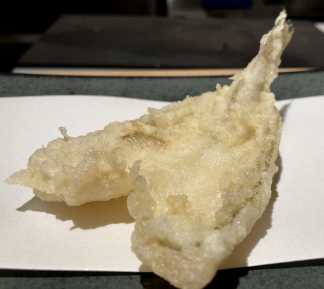 金目・カワハギと珍しい魚天ぷらが出てきて良き。カワハギ、とろとろ旨旨。